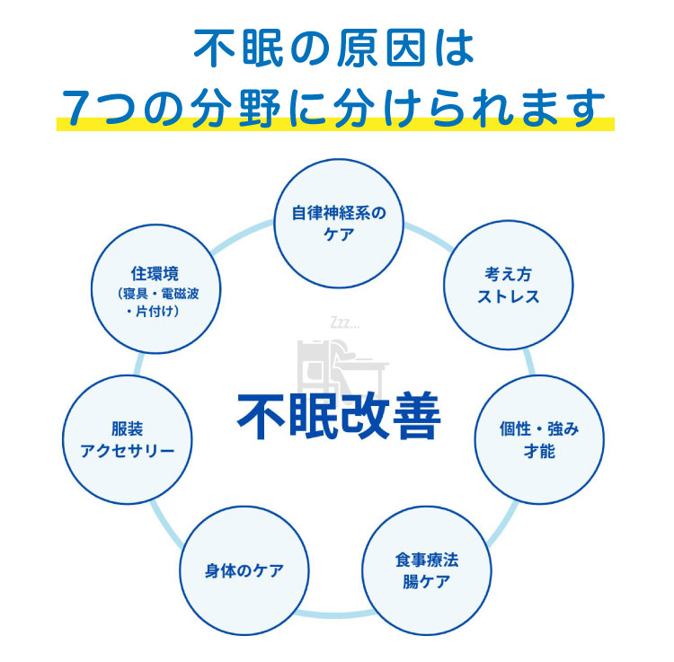 “7つの分野”からあなたの不眠の原因をやさしく紐解き、根本から整えるための方法をお届けします。