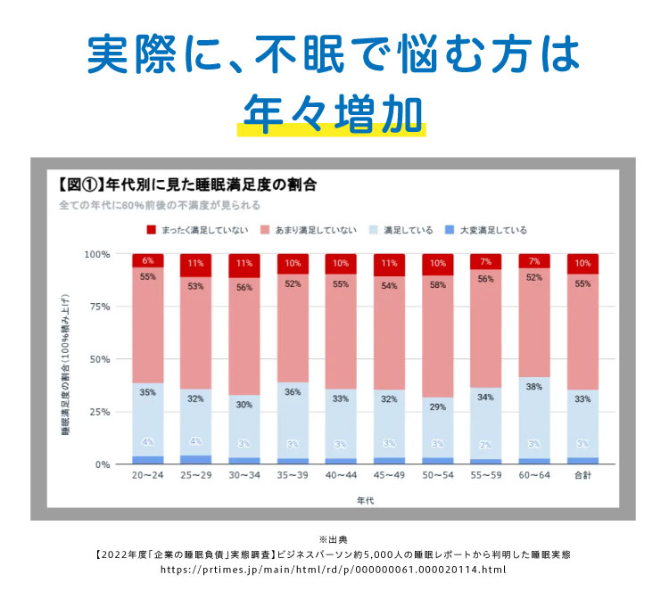 厚生労働省の調査では、日本人の約4割が十分な睡眠を取れていないという結果も。