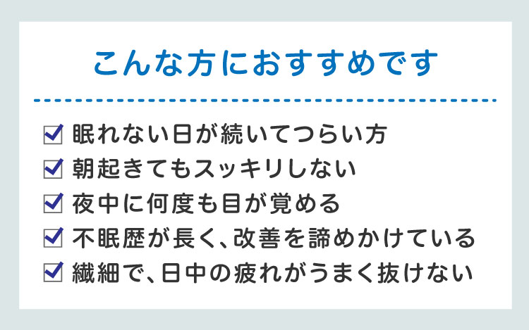 あなたのペースで眠れる毎日を取り戻すための一歩を、踏み出してみませんか?